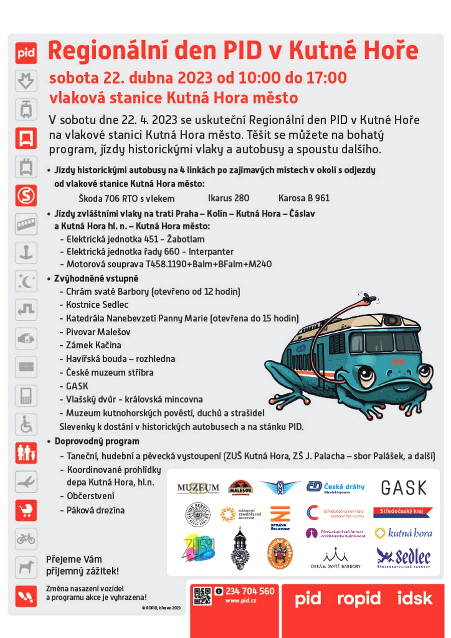 KUTNÁ HORA – Pokud máte rádi historii, vlaky a autobusy, nenecháte si zřejmě ujít sobotní akci Regionální den PID v Kutné Hoře. Můžete se svézt i pákovou drezínou.