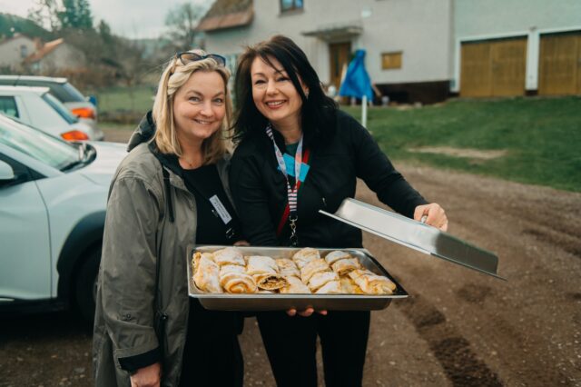 Návrat z exkurze do Machovské Lhoty znamenal jediné. Jídlo, jídlo a zase jídlo. Tato část proto začala obědem, ke kterému se podával hovězí vývar s bylinkovými špeclemi a hovězí ragú na černém pivu s čokoládou a jihočeská lepenice. Po obědě představily Mirka Soldánová z MAS Stolové hory a Martina Saláková Šafková z Královéhradeckého kraje podporu nejen dotačního charakteru pro malé živnostníky, ale také pro školní jídelny.