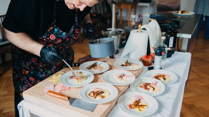 Ochutnávka všech výrobků byla na programu odpoledne. Špecle z konopné mouky a bylinek nebo hovězí ragú na černém pivu s čokoládou připravil k obědu pouze z místních surovin kuchař Jan Péter.