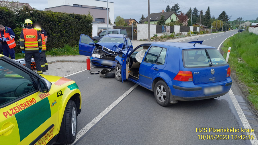 Došlo tam ke střetu dvou osobních aut, během něhož se zranily tři osoby. Ty hasiči předali do péče zdravotní záchranné službě. „Hasiči odpojili autobaterie a provedli protipožární ochranu,“ sdělil mluvčí hasičů Michal Holeček. „Z místa záchranáři transportovali ženy r.1993 a r.1979, a dítě na Urgentní příjem FN Plzeň s lehkými vícečetnými zraněními a při vědomí,“ doplnila informace Andrea Divišová ze zdravotní záchranné služby.