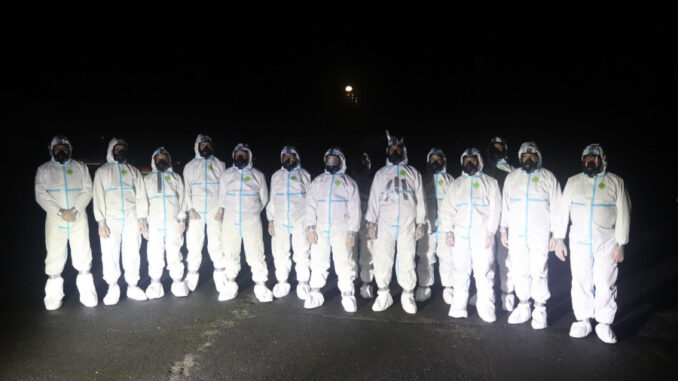 To není slet duchů, ale hasiči nacvičující zásah při úniku neznámé látky. / Zdroj: Hasiči Praha