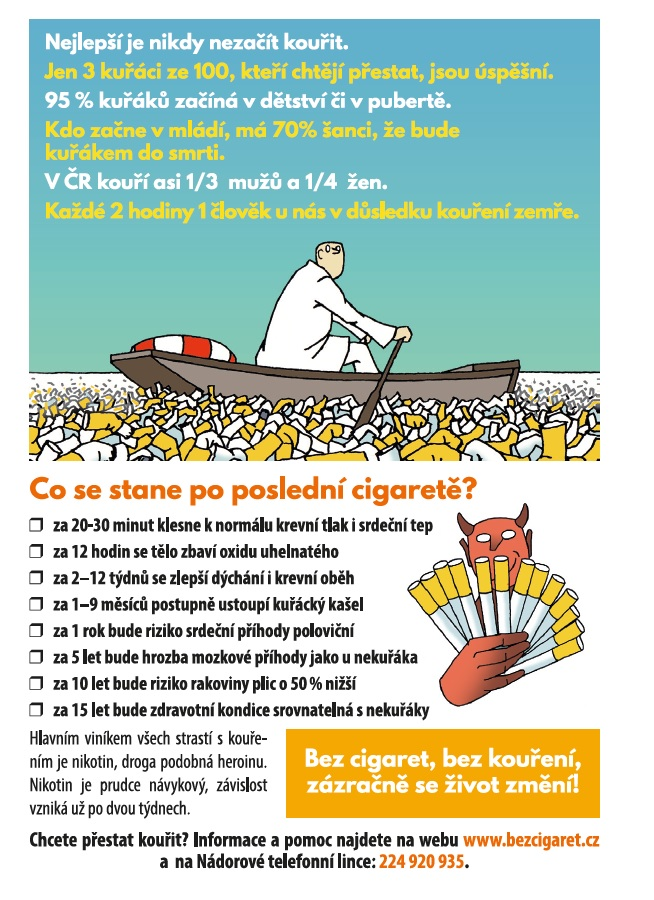Kouření patří k nejhorším neřestem lidstva. Na vzniku rakoviny plic se podílí až 90 procenty. Hlavním viníkem je nikotin, droga podobná heroinu. Nikotin je prudce návykový, závislost vzniká už po dvou týdnech. Vedle jednoznačné škodlivosti kouření cigaret jsou nebezpečné také nové, a zvláště pro mládež, dokonce i pro děti, atraktivní formy kouření, tzn. vapování, užívání nahřívaného tabáku, vodních dýmek a vstřebávání nikotinových sáčků. Uživatelé se mylně domnívají, že se jedná o „zdravější“ formu kouření. „Užíváním moderních nikotinových výrobků, kde je navíc nikotin často v mnohem vyšších dávkách než v cigaretách, nastupuje závislost mnohem rychleji. Žádná forma příjmu nikotinu není bezpečná nebo zdravá,“ upozorňuje Michaela Fridrichová.