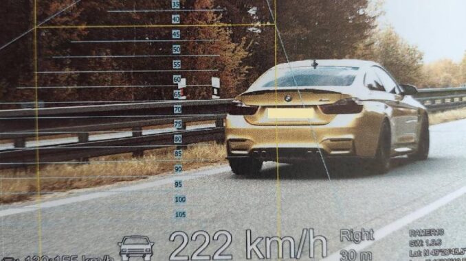 Policisté z Dálničního oddělení Velký Beranov kontrolovali v sobotu 20. května provoz na dálnici D1. Zhruba patnáct minut po dvanácté hodině zaznamenalo měřící zařízení v jejich vozidle průjezd osobního auta BMW M4 s českou registrační značkou. „Vozidlo projíždělo v úseku kolem 107. kilometru dálnice D1 ve směru jízdy na Prahu rychlostí 222 km/h v místě, kde je nejvyšší povolená rychlost 130 km/h,“ uvedla mluvčí policie Dana Čírtková.