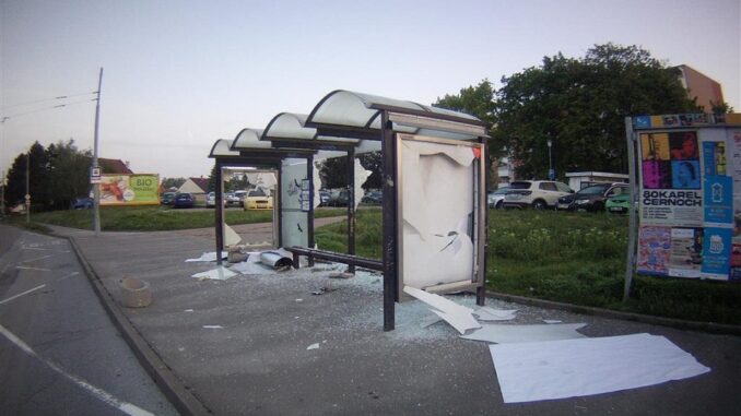 BRNO – Po zemi rozházené skleněné střepy a rozbitý odpadkový koš čekal strážníky, kteří přijeli na zastávku hromadné dopravy v ulice Mikulčická. Spoušť měl na svědomí dvaapadesátiletý Brňan.