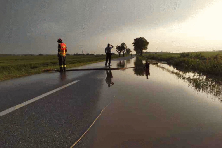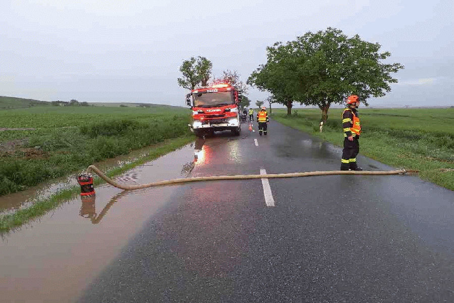 Mezi Hrušovany nad Jevišovkou a Drnholcem byla ve středu po vydatném dešti na silnici voda a větší nános bláta z pole. „Vodu jsme odčerpali pomocí kalového čerpadla,“ napsali hasiči na twitteru. Průjezd místem byl možný se zvýšenou opatrností. Po odčerpání označila Správa a údržba silnic místo dopravními značkami a zajistila úklid.
