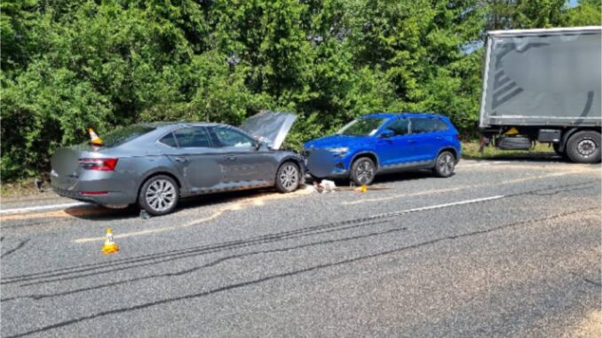 K nehodě došlo zhruba dva kilometry od hřebečského tunelu. Náklaďák, jedoucí od Litomyšle na rovném terénu postupně narazil do tří osobních aut. „Na místě byly usmrceny tři osoby a další tři osoby utrpěly zranění. Jedna z nich byla vrtulníkem transportována do nemocnice,“ uvedla mluvčí hasičů Vendula Horáková. Na místě zasahovali všechny složky záchranného systému. Pomocí hydraulického vyprošťovacího zařízení hasiči vyprostili řidiče a bezvládná těla z aut. Řidič náklaďáku utrpěl pouze lehká zranění a dechová zkouška na alkohol byla negativní. Dále hasiči odstraňovali následky nehody. Silnice byla uzavřena do večerních hodin.