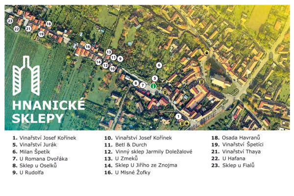 Těšte se na 17 degustačních zastávek Hnanických vinařů a bohatý kulturní program. Kromě ochutnávek lahodných vín vás čeká i prohlídka Hnanických vinic a místních soukromých sklepů. Místní vinaři zároveň představí základní témata vinohradnictví a vinařství a přiblíží i názorně Hnanický terroir, neboli souznění vinic s přírodou Národního parku Podyjí.