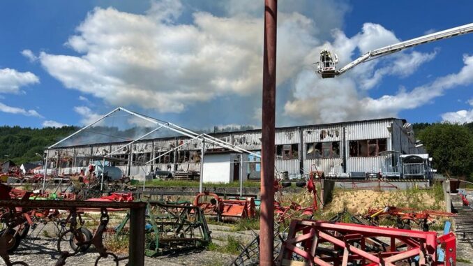 PRACHATICKO – Hasiči od dopoledních hodin bojují s požárem skladu ve Lhenicích na Prachaticku. Uvnitř je uskladněno sto padesát balíků slámy. U jedné z hal se propadla střecha. Na místě zasahuje jedenáct jednotek hasičů a byl vyhlášen druhý stupeň požárního poplachu.