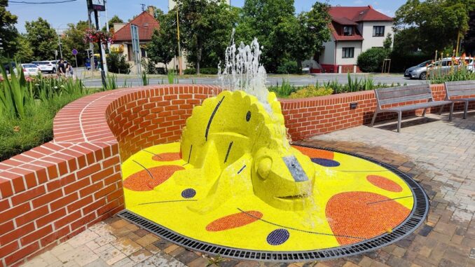 OTROKOVICE – Zrekonstruované tržiště na Trávníkách má novou dominantu. Stala se jí umělecky ztvárněná fontána. „Každá z místních částí si zaslouží svůj vodní prvek, zatímco na Baťově je chloubou Otrokovic Štěrkáč, na Trávníkách by to mohl být Ještěrkáč,“ prohlásila starostka Hana Večerková.