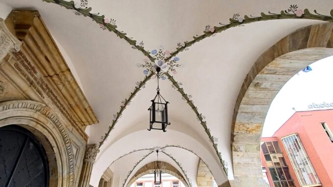 NYMBURK – Rekonstrukce podloubí radnice na závěr obohatila strop o historickou výzdobu.