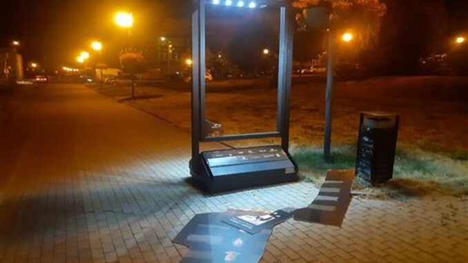 Strážníci zadrželi muže, který zničil jeden z panelů venkovní výstavy a poškodil auto (zdroj mesto-pisek.cz)