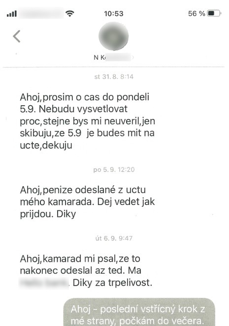 Trvala na tom, že zboží zašle až po připsání peněz na účet. Poté následoval téměř vždy stejný scénář. Výmluvy, a to buď v podobě, že byla chyba na straně přepravce nebo se spletla, a zásilku poslala na jinou adresu, případně ještě neměla čas s balíčkem zajít k dopravci a poslat jej. Objednané a zaplacené zboží už zájemci nikdy neviděli.