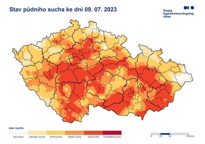 Největší moravskou řekou Moravou protéká ve Strážnici 14 % průměrného červencového průtoku. Nedostatek vody se projevuje na celém území. V současné době pokračuje období nízkých srážkových úhrnů. Spolu s extrémními teplotami tak hrozí dlouhotrvající sucho. Na většině vodních toků na území ve správě Povodí Moravy se vyskytují výrazně podprůměrné průtoky. Většina toků má vodnosti nižší než 30 % měsíčního normálu. Ukazatel sucha je dosažen na 30 % profilů se stanoveným limitem sucha. Povodí Moravy proto ve středu vydalo doporučení pro vodoprávní úřady a obce. „Vzhledem ke stávajícímu suchému období a nepříznivé situaci jsme dnes doporučili vodoprávním úřadům na příslušných vodních tocích provádět častější kontrolu dodržování minimálních zůstatkových průtoků, manipulačních řádů a odběrů povrchových vod. Jednotlivým obcím a obcím s rozšířenou působností jsme doporučili posoudit situaci sucha na jejich území a v případě potřeby provést omezení či zakázání obecného nakládání s vodami,“ informoval generální ředitel Povodí Moravy Václav Gargulák.