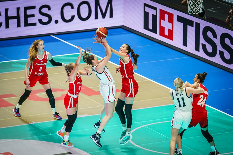 Češky drtila zejména obrovská převaha Američanek v doskakování, která vyvolávala vzpomínky na 39 útočných doskoků soupeře z utkání s Kanadou. Plus se český tým přes tvrdou obranu trápil ve střelbě a nedařilo se mu vytvářet jednodušší pozice z rychlých brejků. Lvice ale i přes velkou ztrátu dostávaly svým slovům a utkání nezabalily, druhý poločas odstartovaly sérií osmi rychlých bodů a donutily nespokojenou americkou trenérku k oddechovému času. Několik velmi dobrých zákroků na obou koncích palubovky si připsala Emma Čechová. Ve třetí čtvrtině se český tým držel velmi slušně, o dílčí porážce v této desetiminutovce rozhodl až třetí koš v poslední sekundě čtvrtiny.