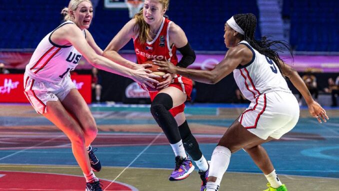 PRAHA – Při zápasové premiéře skleněného kurtu s LED panely nestačily na suverénní obhájkyně zlata z USA 61:121 a čekají je tak zápasy o páté až osmé místo. Další duel je pro český tým na řadě hned v sobotu, kdy se utkají s Japonskem.