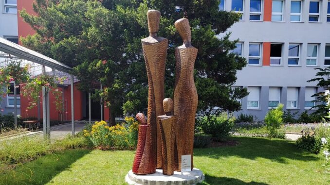 OTROKOVICE – Dřevěné sousoší „Rodina“ z dílny místního umělce Jiřího Holuba nově zdobí atrium Městské polikliniky Otrokovice. To prošlo také celkovou úpravou zeleně, a klidová zóna mezi pavilony tak nabízí návštěvníkům příjemné místo pro odpočinek.