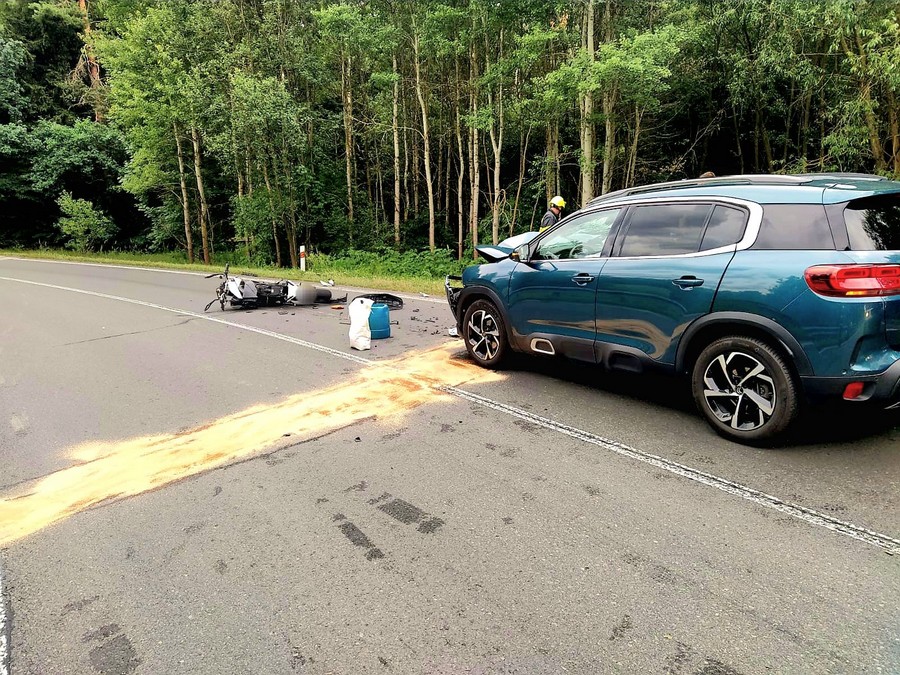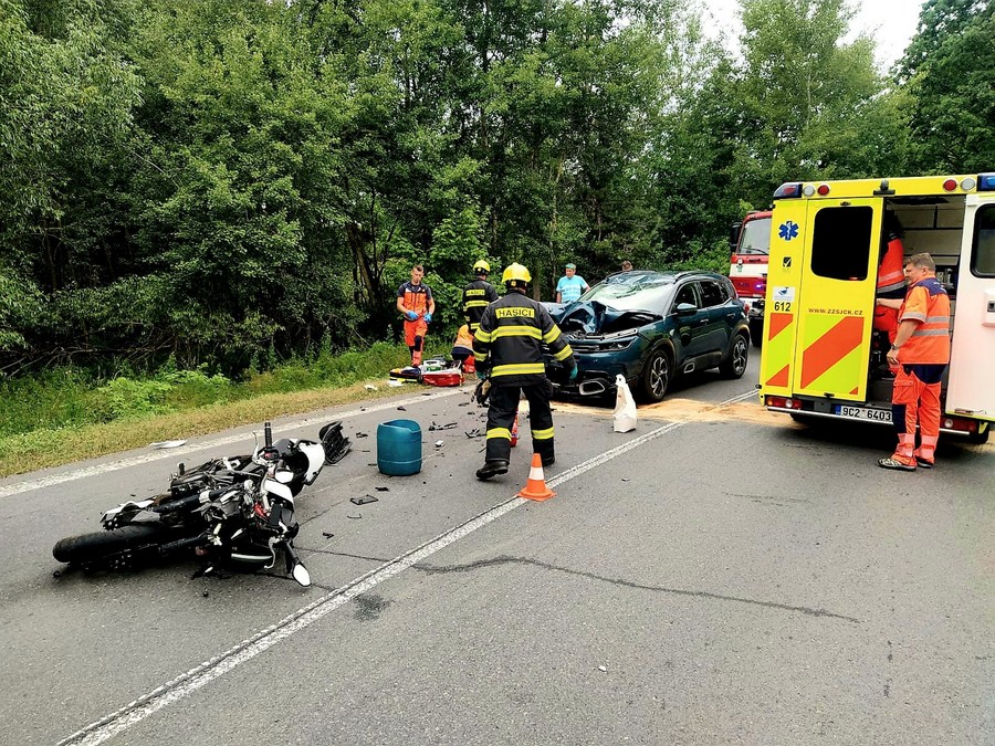 „Tříčlenná posádka osobního vozidla utrpěla převážně lehčí poranění a po ošetření byla převezena do spádového zdravotnického zařízení. Motocyklista středního věku a cizí státní příslušnosti zůstal po nárazu v krátkodobém bezvědomí, postupně došlo ke zlepšení stavu a komunikoval. Zajistili jsme jeho stav a s podezřením na středně těžká polytraumata jej letecky přepravili do krajské nemocnice,“ popsala Fajtlová.