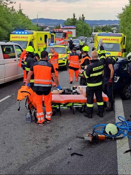 Na místě zasahují všechny složky integrovaného záchranného systému. Podle informací mluvčí jihočeské záchranné služby Zuzany Fajtlové, v osobním voze cestoval pár seniorů. „Žena utrpěla poranění hrudníku a po ošetření byla ve stabilním stavu převezena pozemní cestou do nemocnice v Českých Budějovicích. Muž zůstal ve voze zaklíněn a bylo nutné jeho vyproštění. Byl po celou dobu při vědomí a utrpěl středně těžká poranění hrudníku a páteře. Záchranáři zajistili jeho stav všemi dostupnými prostředky akutní přednemocniční péče a následně jej letecky transportovali taktéž do krajské nemocnice,“ popsala mluvčí záchranářů.