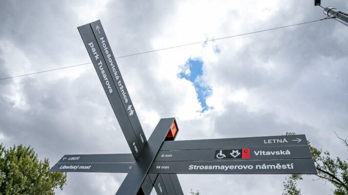 PRAHA – Betonová lávka, která spojuje Karlín s Holešovicemi, od pátku slouží pěším i cyklistům. Kdo zavítal na její otevření, mohl si v její blízkosti všimnout i nových prvků městského mobiliáře, které lidem pomůžou se lépe zorientovat. Obelisky a směrovky spadají do systému komplexní městské navigace s názvem Čitelná Praha. Jak vypadají a co vše na nich najdete?