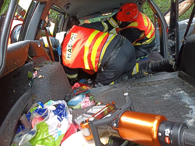 Řidič zůstal po havárii zaklíněný v autě. „Hasiči mu poskytli předlékařskou první pomoc, stabilizovali vozidlo proti pohybu a připravili si hydraulické vyprošťovací zařízení. Posádka ZZS si ihned po příjezdu převzala řidiče do péče. Hasiči s pomocí hydraulického vyprošťovacího zařízení odstranili druhou řadu sedadel. Tím si uvolnili přístup k řidiči a mohli jej šetrně na páteřové desce vyprostit pátými dveřmi z vozidla,“ vylíčil zásah Moravec.