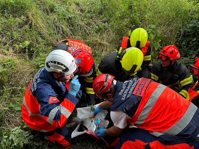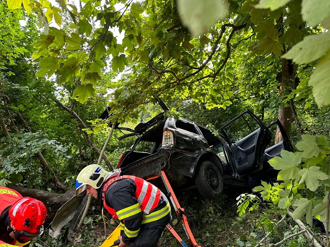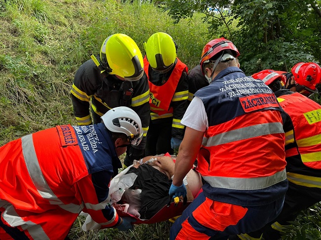 „Muž nárazem do stromu utrpěl středně těžká poranění. Pacienta bylo nutné zajistit krčním límcem. Záchranáři mu ošetřili další zranění v rámci přednemocniční neodkladné péče a za spolupráce s hasiči ve vakuové matraci a na scoop rámu řidiče z těžko přístupného terénu transportovali do sanitky,“ informovala mluvčí krajských záchranářů Gabriela Netopilová Sluštíková.