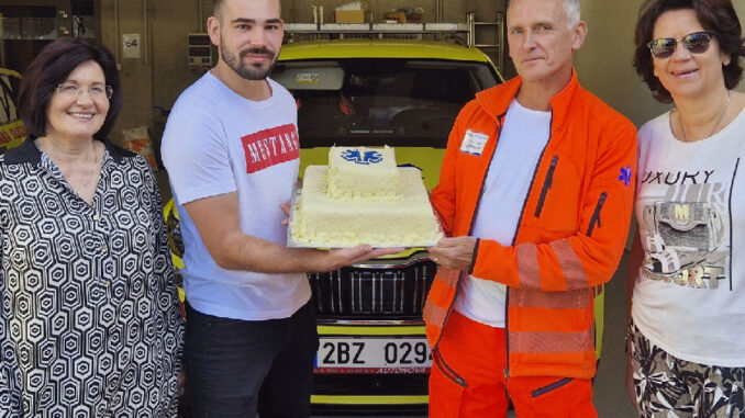 Paní Jana se svojí sestrou, která sama upekla dort, jej osobně přinesla na záchranářskou základnu v Brně-Bohunicích, aby potěšila ty záchranáře, kteří se o jejího syna Ondřeje postarali. Záchranáři Marek Krejčí i Patrik Mazal měli velkou radost. Tedy především z toho, že pacient už je v pořádku, a pak samozřejmě také z milého překvapení, které se jen rozplývalo na jazyku. „Na záchrance jsem 30 roků a tohle je můj první dort jako poděkování za péči o pacienta. Je skvělý, děkujeme za něj a rodině paní Jany přejeme především hodně zdraví a ať se daří,“ usmívá se Patrik. Hned byl ten den krásnější…