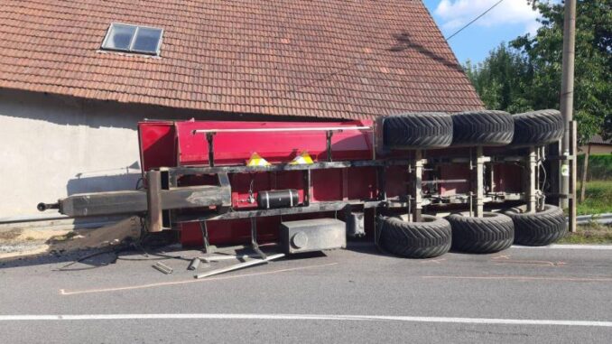 Nehoda se stala v sobotu 19. srpna krátce po čtrnácté hodině odpoledne na silnici I/19 mezi Novým Městem na Moravě a Bystřicí nad Pernštejnem. „Osmnáctiletý řidič v obci Divišov při průjezdu levotočivé zatáčky v klesání nepřizpůsobil rychlost jízdy zejména svým schopnostem, vlastnostem vozidla a převáženého nákladu a došlo k převrácení traktorového návěsu vpravo mimo komunikaci,“ uvedla mluvčí policie Dana Čírtková.