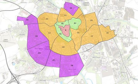 Stávající zóna B je od 1. září nově rozdělena na oblasti B1, B2 a B3. Jsou navrženy s ohledem na přirozené hranice centra města a přiměřený prostor pro nalezení volného místa k zaparkování. Nově vydaná dlouhodobá parkovací oprávnění proto už budou platit pouze v oblasti B1, B2, nebo B3. Nikoli v celé parkovací zóně B, jako tomu bylo dosud. Důvodem je snaha redukovat zvýhodněné parkování jen na jedno místo, aby vlastnictví dlouhodobé karty neposkytovalo volné parkování v širší části města. Pouze žadatelé ze zóny A (pěší zóna), kde je nedostatek parkovacích míst, si budou moci vybrat ještě jednu z oblastí v zóně B, aby se zvýšila jejich šance na zaparkování.