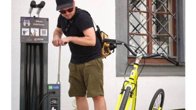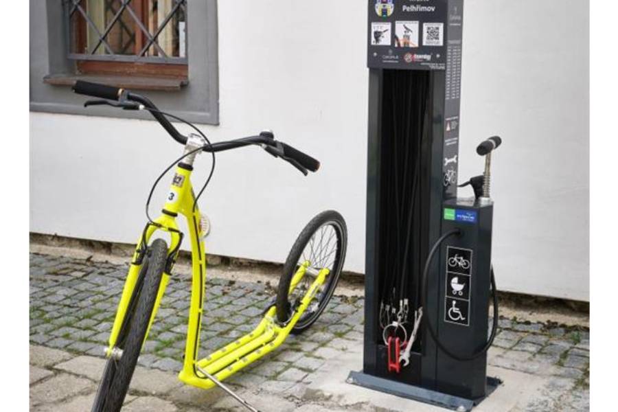 PELHŘIMOV – Zájem o cyklistiku v Pelhřimově, ale i v jeho okolí narůstá. Ve městě proto přišli s nápadem zřídit speciální servisní stanici. Nachází se u Masarykova náměstí a cyklisté si zde mohou podle potřeby provést kontrolu kola a jeho základní servis.