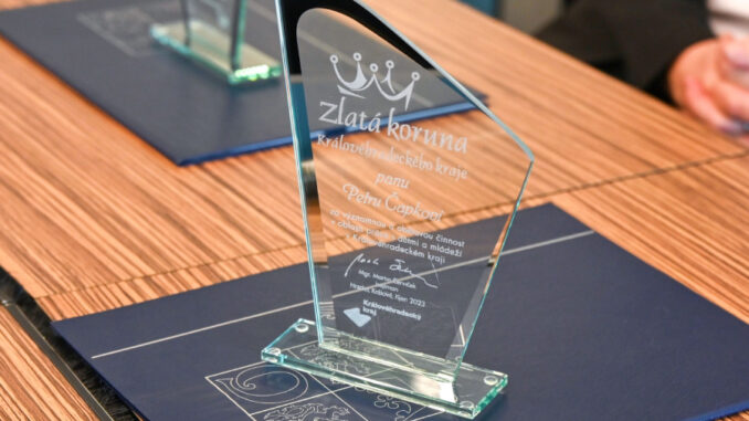 KRÁLOVÉHRADECKO – Ocenění Zlatá koruna Královéhradeckého kraje obdrželo 15 dobrovolníků, kteří se mnoho let nezištně věnují činnosti s dětmi a mládeží. Ve svém volném čase tak pomáhají rozvíjet jejich zájmy, dovednosti, hodnoty a předávají jim své zkušenosti z různých oblastí. Z rukou hejtmana Martina Červíčka a náměstka Arnošta Štěpánka v sídle kraje převzali ocenění v podobě poukázky na výběr zboží v hodnotě 15 tisíc korun sportovní trenéři nebo zástupci společenských a kulturních organizací.