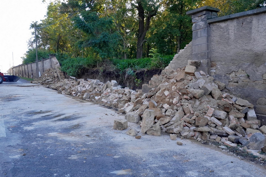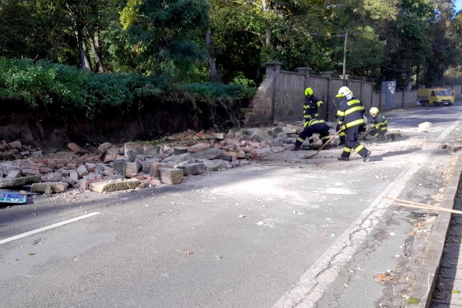 KLADNO – V neděli 22. října ve dvě hodiny po poledni došlo v obci Šlapanice ke zřícení velké části zdi podél silnice číslo 118. Hasičům to oznámil starosta obce.