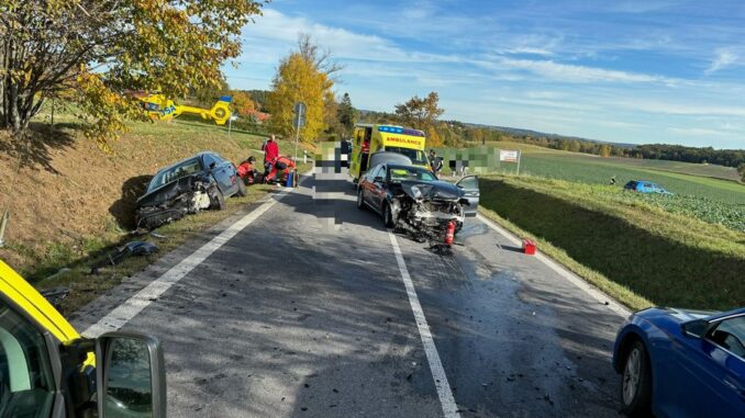 ČESKOBUDĚJOVICKO – Další vážná nehoda se stala v neděli v dopoledních hodinách, a to na stejném úseku jako sobotní hromadná nehoda čtyř automobilů (informovali jsme zde). Tentokrát se na trase mezi Českými Budějovicemi a Českým Krumlovem střetla tři osobní vozidla. Silnice musela být uzavřena. Na místo letěl také vrtulník.