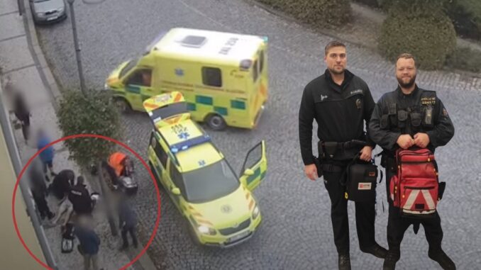 Když přiběhli na místo, muži v bezvědomí již poskytovala první pomoc kolemjdoucí žena. Právě ona na místo přišla s mužem, který běžel k policistům pro pomoc a sama okamžitě započala masáž srdce.