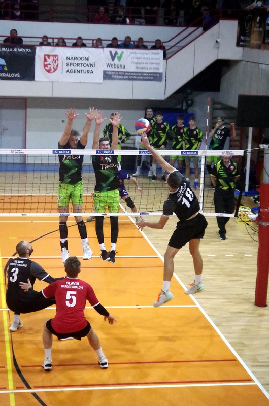 HRADEC KRÁLOVÉ – Toto úterý si téměř 400 milovníků volejbalu přišlo v hale TJ Slavia na své. Domácí tým skvělým výkonem a s výbornou atmosférou v zádech porazil ve 2. kole volejbalového poháru favorizovaný tým Trox Příbram 3:2 na sety.