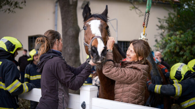 K události v ulici Bohdanečská ve Vinoři byli hasiči přivolaní kolem 13. hodiny odpoledne. Zraněný kůň tu ležel na zemi a nebyl schopen sám vstát. Veterinář veliteli zásahu doporučil povolat vyprošťovací automobil. Ten na místo přijel ze stanice Chodov. „Pomocí speciálních popruhů a hydraulické ruky jsme koně bezpečně zvedli a postavili na nohy,“ říká mluvčí pražských hasičů Martin Kavka. Zvíře bylo poté předáno do péče veterináře a své majitelky.