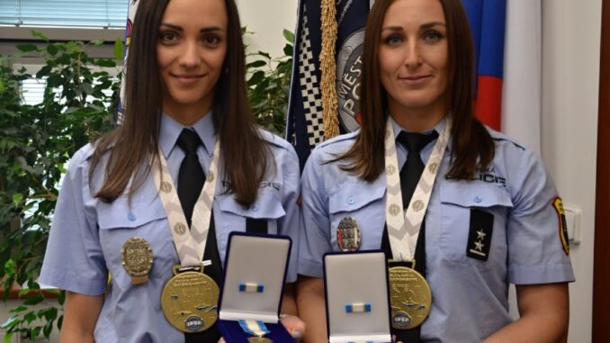 OSTRAVA – Mezi ostravskými strážnicemi jsou sportovní hvězdy. Řeč je o Aleně Schaffartzikové a Nikol Vítečkové, které si na své akrobatické konto připsali další úspěch! Taneční tyč tentokrát vyměnily za akrobatické kruhy a „dotočily“ se na nich k světovému prvenství! Primátor Ostravy Jan Dohnal je za jejich úspěch ocenil. Pogratuloval jim také ředitel ostravské městské policie Miroslav Plaček, který jim na slavnostním aktu předal medaile.