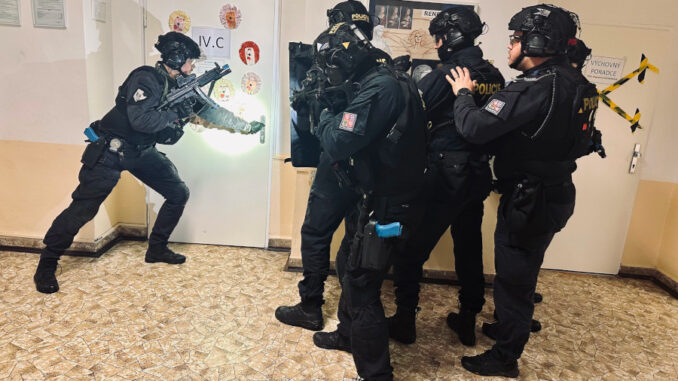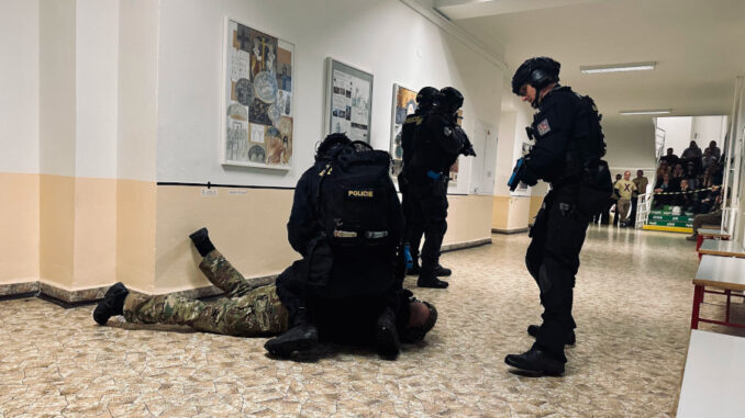 PRAHA – Dramatické chvíle zažili učitelé jedné z letňanských škol. Do budovy školy vnikl ozbrojený agresor, který řádil jako zběsilý a několik lidí zranil. Naštěstí šlo pouze o cvičení, kterým si příslušníci Policie ČR testovali svou připravenost právě na takovou situaci.