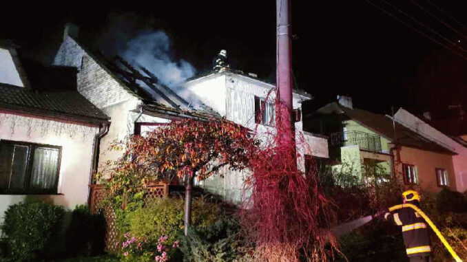 HODONÍN – V noci ze středy na čtvrtek hasiči zasahovali v Zarazicích u Veselí nad Moravou, kde hořela střecha rodinného domu v ulici Drahy. Hasiči požár likvidovali pěti C proudy.