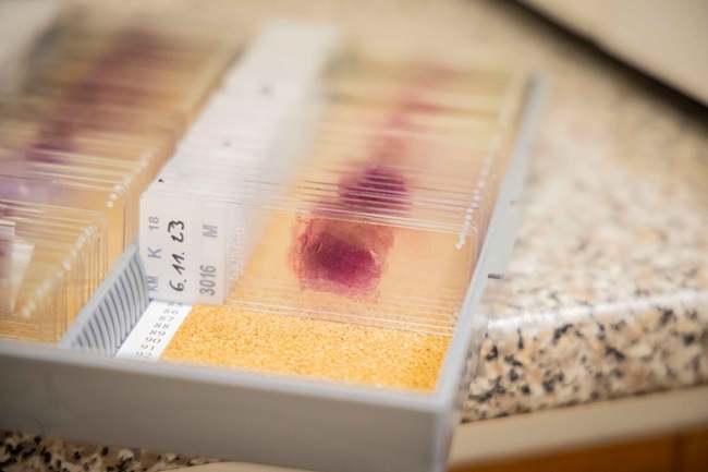 Patologie je obor sloužící k bioptické a cytologické diagnostice chorobných procesů a léčbě živých pacientů, zejména v oblasti nádorových onemocnění. Ke stanovení diagnózy z těchto vzorků používají lékaři-patologové mikroskop, s jehož pomocí prohlíží mikroskopické preparáty, tedy velmi tenké speciálně obarvené řezy tkáněmi nebo nátěry jednotlivých buněk, které k diagnóze připraví laborantky oddělení patologie. Na základě změn zjištěných v těchto vzorcích pak stanoví diagnózu například nádorového onemocnění nebo zánětu a určí také stupeň poškození daného orgánu. Díky přesné diagnóze stanovené patologem se poté provádí léčba pacienta. Během loňského roku vyšetřili zlínští patologové v KNTB zhruba 12 tisíc diagnóz a asi 80 tisíc skel se vzorky tkání.