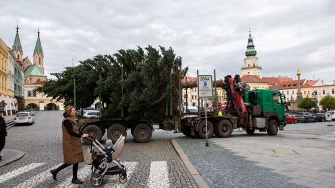 KROMĚŘÍŽ – Kroměřížané mohou začít se slavením Vánoc. Od dnešního dopoledne jim na náměstí stojí vánoční strom, který ještě nedávno rostl před rodinným domem v ulici Kazimíra Rudého na sídlišti Barbořina.