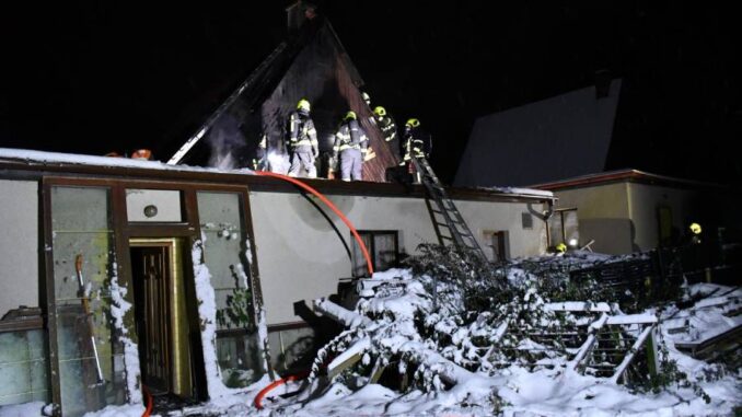 Ke dřevěné chatě byla asi před třiceti šesti lety přistavěna zděná část. „Při příjezdu hasičů byla celá střecha v plamenech. Hasiči ihned nasadili dostatečný počet proudů vody k likvidaci požáru. Plameny hasiči zkrotili za necelou hodinu, poté museli rozebrat střešní konstrukci,“ uvedla mluvčí hasičů Vendula Horáková. Na místo hasiči povolali také sypače, kvůli namrzlé vozovce. Požár zcela zlikvidovali před půlnocí a na závěr chatu zkontrolovali termokamerou.