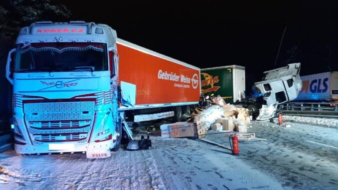 KRAJ VYSOČINA – Čtyři kamiony havarovaly v úterý hodinu před půlnocí na dálnici D1 u Humpolce. Řidič jednoho z nich podlehl následkům těžkých zranění. Na místě se ráno vytvořila dlouhá kolona.