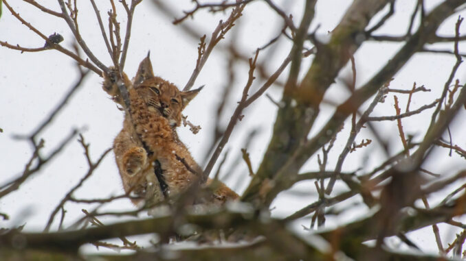 DOBRÁ – Rysa v nesnázích, který uvízl v korunách stromů museli zachránit hasiči. Zvíře se před jejich příjezdem snažili vysvobodit zaměstnanci ze Záchranné stanice a Domu přírody Poodří v Bartošovicích, ale marně. Záchrana se proměnila v pěkné drama.