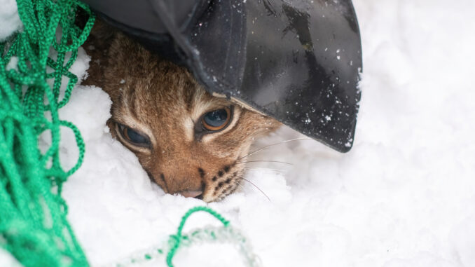 Bylo nutné zvážit další postup. Všichni přítomní se shodli na částečném odřezání větve, čímž by došlo k jejímu zlomení, a rys by tak spadl do připravené záchranné sítě. Naštěstí plán „B“ již vyšel a zvíře tedy dopadlo do sítě. Následně jej dali do připraveného přepravního boxu a útočiště našel v Záchranné stanici a Domě Poodří v Bartošovicích.
