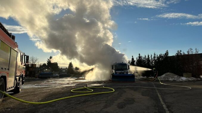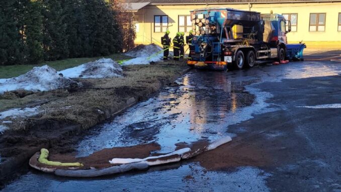 Vůz vzplál v úterý 12. listopadu a plameny jej zcela pohltily. Hasiči po příjezdu nasadili na boj s ohněm dva vodní proudy. „Požár dokázali lokalizovat během několika minut, ale komplikaci jim způsobily provozní kapaliny, které při požáru unikly z posypového vozu do kanalizace,“ sdělil mluvčí hasičů Lukáš Popp. Na ně použili hasiči sorbent i sorpční hady a provizorní nornou stěnu vytvořenou z hadice, které umístili nejen u kanalizace poblíž vozidla.