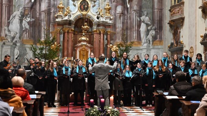 UHERSKÉ HRADIŠTĚ – Dechberoucí vystoupení cimbálové muziky Cifra a pěveckého sboru VIVA LA MUSICA navodilo v sobotu v kostele sv. Františka Xaverského na Masarykově náměstí kouzelnou sváteční atmosféru. Benefiční koncert zároveň podpořil letošní projekt Uherskohradišťské nemocnice Rok plic.