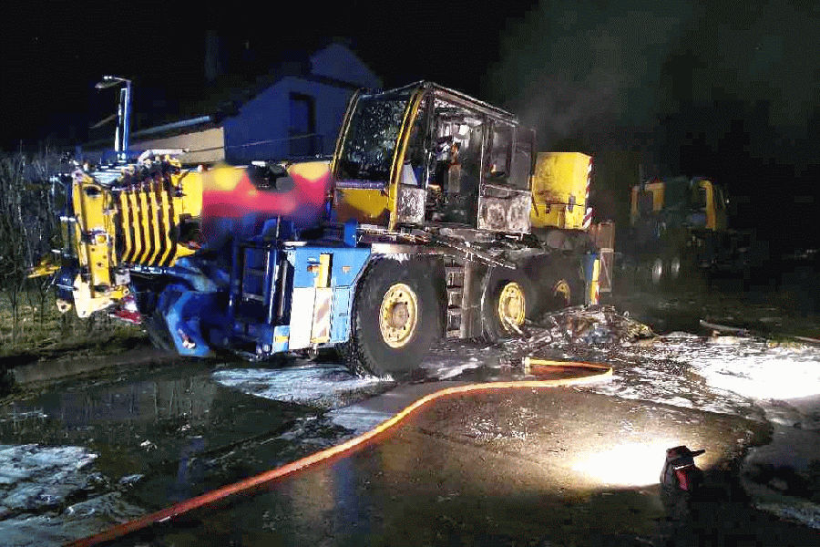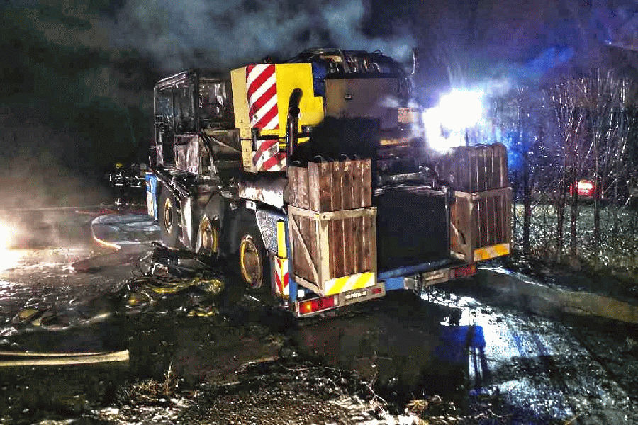 V pátek po osmé hodině večer vyjely jednotky hasičů k ohlášenému požáru autojeřábu v Bučovicích. V době příjezdu první jednotky byl již celý jeřáb v plamenech. K hašení autojeřábu a k ochraně dalšího blízko zaparkovaného jeřábu a vedle stojícího objektu hasiči nasadili několik vodních a pěnových proudů. Velitel zásahu rozhodl o vyhlášení druhého stupně požárního poplachu a vyslání dalších posilových jednotek. Během hašení byli hasiči několikrát ohroženi explodujícími pneumatikami. „Požár se zasahujícím jednotkám podařilo dostat pod kontrolu za necelou hodinu od ohlášení. Další hodinu pak trvala úplná likvidace. Škodu vyčíslil vyšetřovatel na 4,5 miliónu korun. Příčinou byla technická závada na požárem zasaženém jeřábu,“ konstatoval mluvčí hasičů Filip Venclovský.