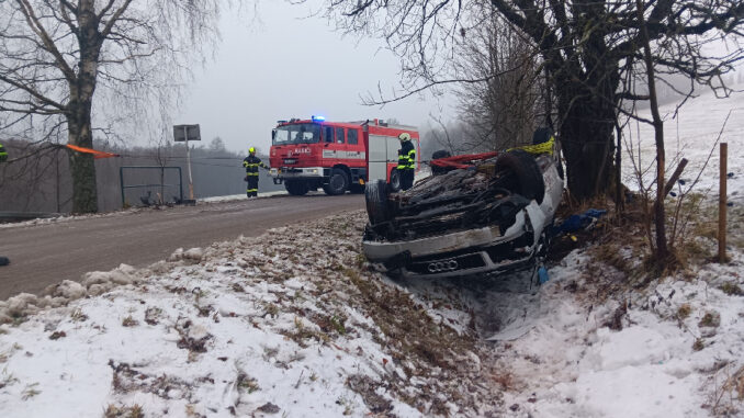 K prvnímu zásahu došlo krátce po osmé hodině ranní v Sedloňově, kam přispěchali profesionální hasiči z HS Dobruška a jednotka dobrovolných hasičů Olešnice v Orlických horách. „Posádka vylezla z vozidla před příjezdem hasičů. Provedli jsme standardní protipožární úkony. Osobní vozidlo jsme převrátili opět na kola a vytáhli na vozovku. Při nehodě došlo ke zničení dopravního značení a konstrukce mostku,“ sděluje Radek Mencl, vedoucí oddělení krajského operačního a informačního střediska HZS. Jedna osoba musela být v péči záchranářů.