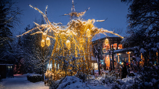 TRUTNOVSKO – Díky prodloužené otevírací době můžete do areálu dorazit i po soumraku a užít si tisíce světel i dva zlaté baobaby. Kromě nich areál zahrady ozáří tisíce světélek na vánočních řetězech, zářící siluety nosorožců, bongů, buvolů a dalších zvířat.