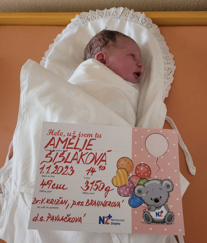 - Amélie je prvním dítětem nemocnice a okresu Znojmo roku 2023, narodila se 1. 1. v 14:10.